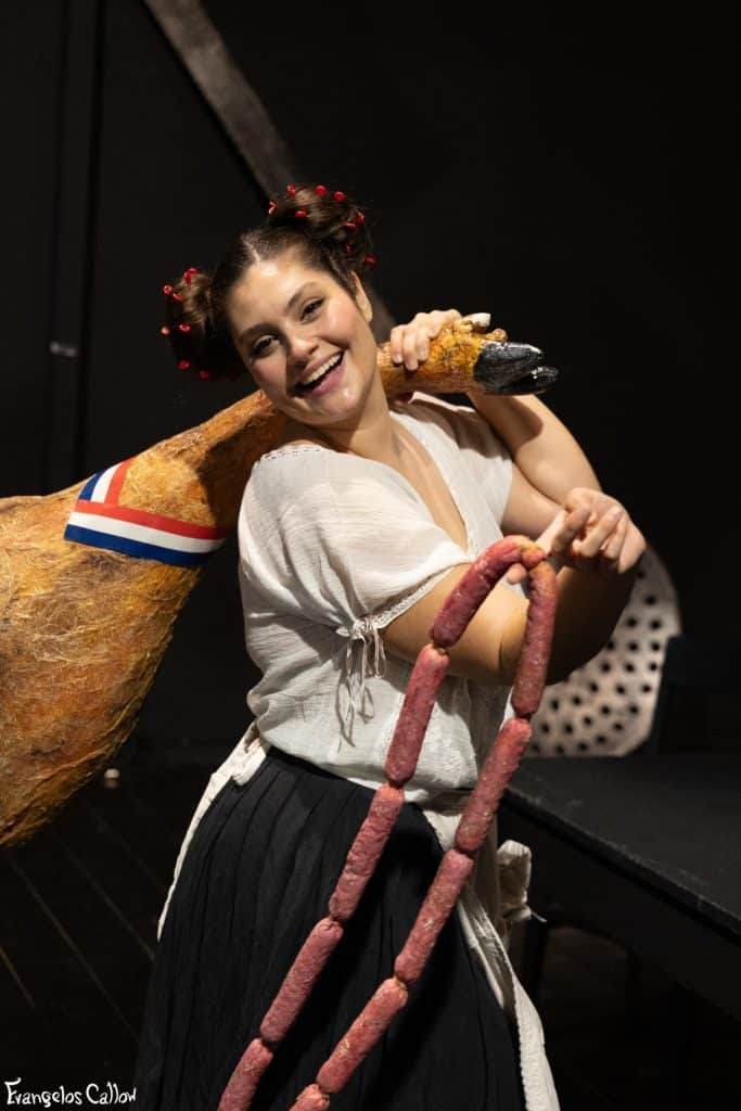 Το έργο «Ταξίδι γύρω από τη Χύτρα μου» είναι μια γαλλική φάρσα του Λαμπίς. Αυτό σημαίνει ότι το κείμενο πρέπει να το αντιμετωπίζεις σαν μια πολύ καλοδιαβασμένη μουσική παρτιτούρα, όπου ο ρυθμός ανεβαίνει συνεχώς, όλο και πιο ψηλά. Νιώθω, λοιπόν, ότι κάθε παράσταση απαιτεί από εμένα να είμαι πολύ καλά “κουρδισμένη”, αλλά παράλληλα να μη λείπει η ευχάριστη και τσαχπίνικη νότα που χρειάζεται ο ρόλος μου, δηλαδή η «Ευτυχία».”