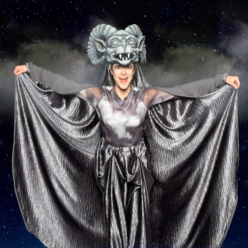 Εκτός από το γκαργκόιλ, με πολύ γρήγορες εναλλαγές κοστουμιών, βουτάω και στους χαρακτήρες μιας τσιγγάνας και μιας Παριζιάνας. Οι τρεις αυτοί ρόλοι έχουν διαφορετικές φωνές και διαφορετικές σωματικότητες. Οι συνεχείς και γρήγορες εναλλαγές τους κατά τη διάρκεια της παράστασης, πιστεύω πως βοηθούν έναν ηθοποιό να παραμένει σε κατάσταση εγρήγορσης και να εξασκεί το αίσθημα του παιχνιδιού.